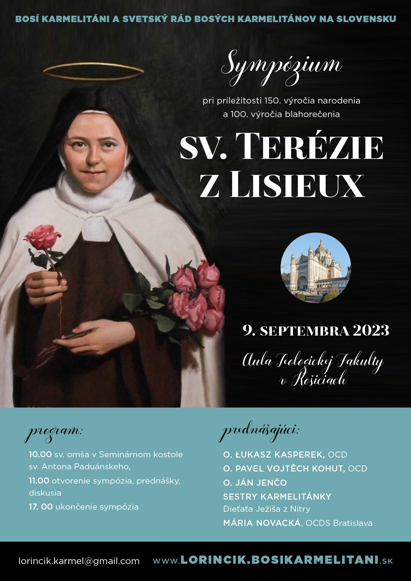 Srdečne vás pozývame na sympózium pri príležitosti 150. výročia narodenia a 100. výročia blahorečenia sv. Terézie z Lisieux, ktoré sa uskutoční o dva týždne v sobotu 9. septembra 2023 v Aule Teologickej Fakulty v Košiciach. Viac informácií nájdete na plagáte na výveske.