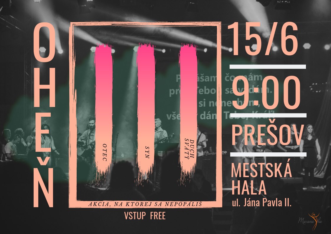 Oheň je priestorom, kde sa mnohí stretávajú so živým Bohom, zakúšajú jeho dobrotu a ich život sa mení. Vstup na toto podujatie je voľný.