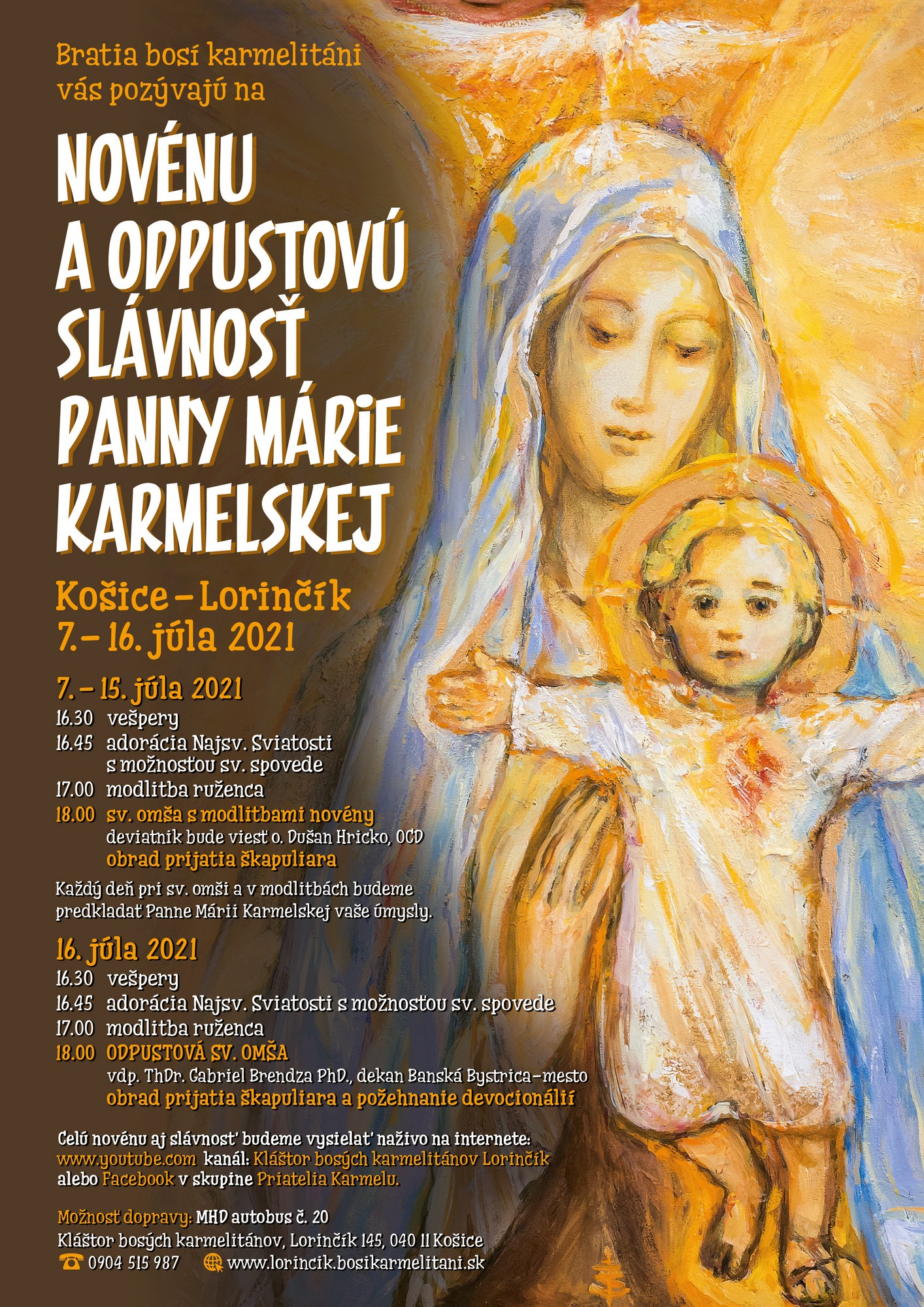 Bratia bosí karmelitáni vás pozývajú na novénu a odpustová slávnosť Panny Márie Karmelskej od 7. do 16. júla 2021.