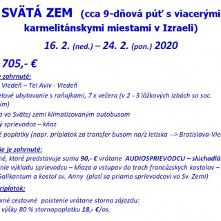 Chcel/a by si v najbližšom čase navštíviť Svätú zem s miestami z Ježišovho života, ako aj s viacerými lokalitami spätými s (nielen) začiatkami karmelitánskeho rádu?